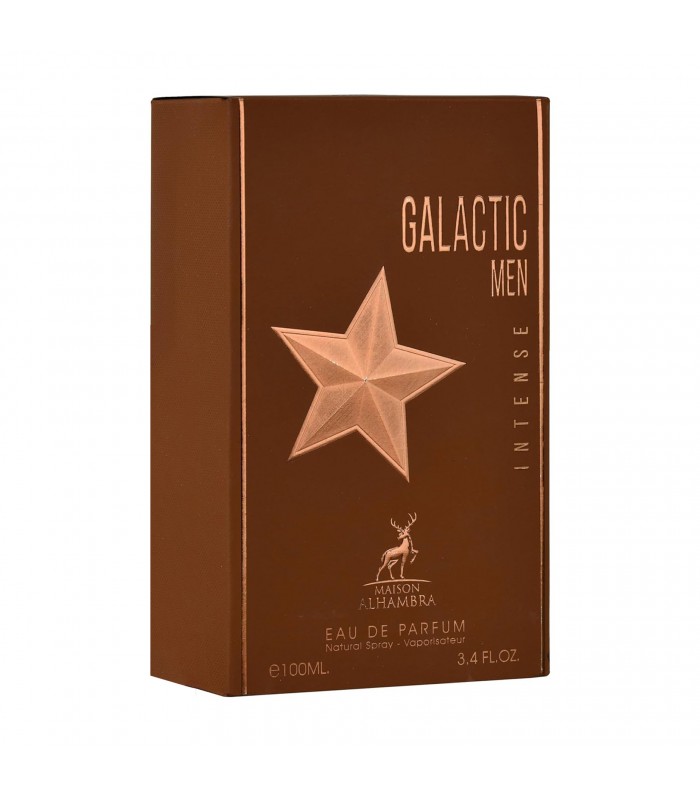 عطر Galactic Men Intense، محصولی مردانه با طبع گرم و رایحهای شیرین تنباکویی است که با الهام از عطر معروف A*Men Pure Havane از برند موگلر طراحی شده است.