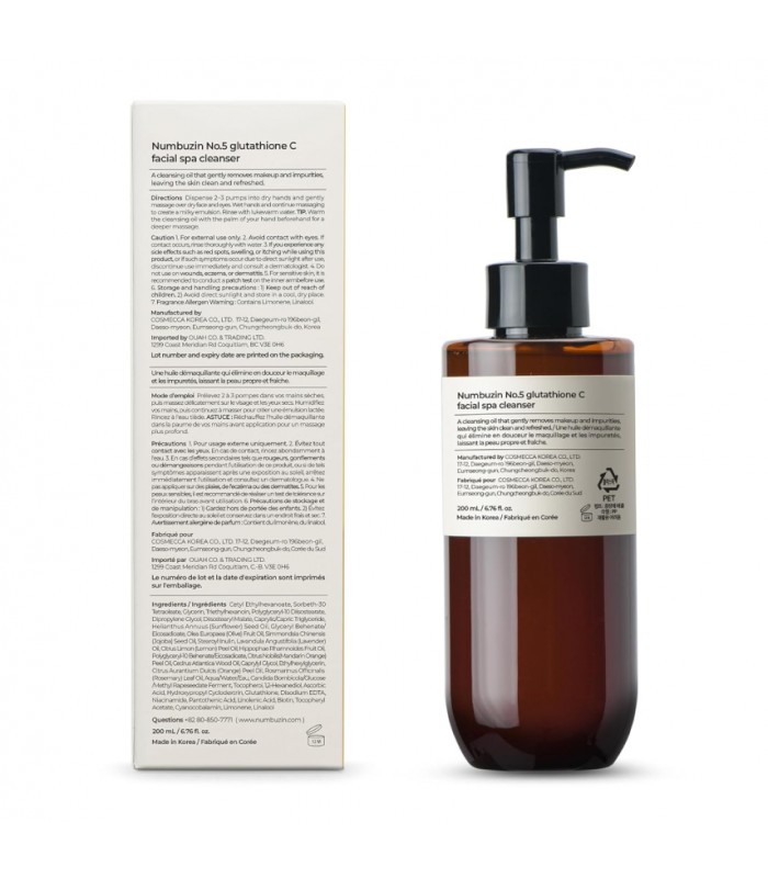 توصیف بستهبندی روغن پاک کننده صورت نامبوزین شماره 5 گلوتاتیون و ویتامین ث: لمسی از ظرافت در دستان شما