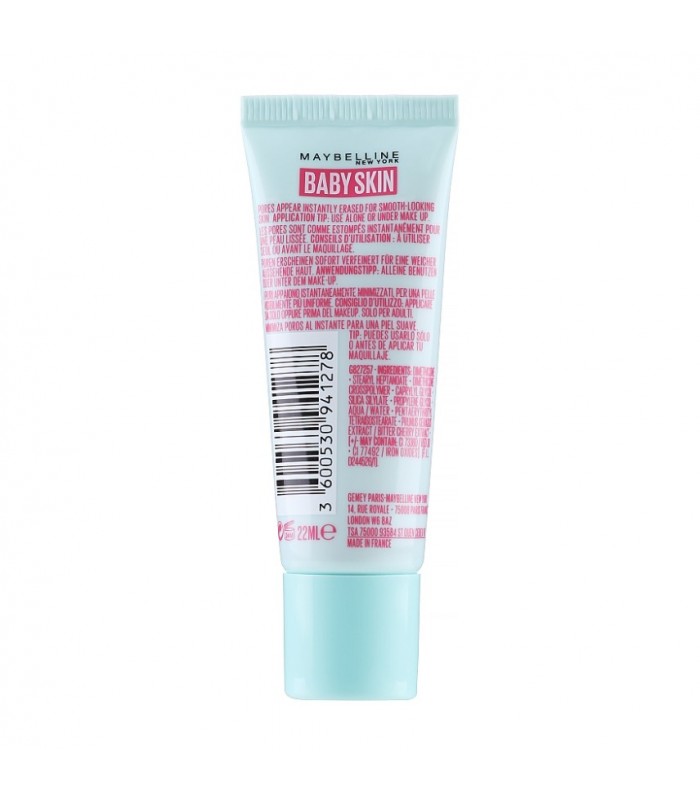 ترکیبات پرایمر Baby Skin میبلین، ترکیبی هوشمندانه از مواد ایمن و مؤثره که پوست رو بدون آسیب، صاف میکنه. اصلیترین موادش شامل دایمتیکون (برای صافی ابریشمی)، دایمتیکون کراسپلیمر (برای محو کردن منافذ )، استئاریل هپتانوات (نرمکننده طبیعی)، کاپریلیل گلیکول (مرطوبکننده)، سیلیکا سیلیلات (ماتکننده)، پروپیلن گلیکول (هیدراتاسیون عمیق)، پنتااریتریتیل تتراایزواستئارات (نرمکننده) و آب خالص میشه. این فرمول بدون پارابن و فتالاته هست. اگر دنبال خرید پرایمر با ترکیبات پاک و مؤثر هستی، Baby Skin گزینه ایدآله!