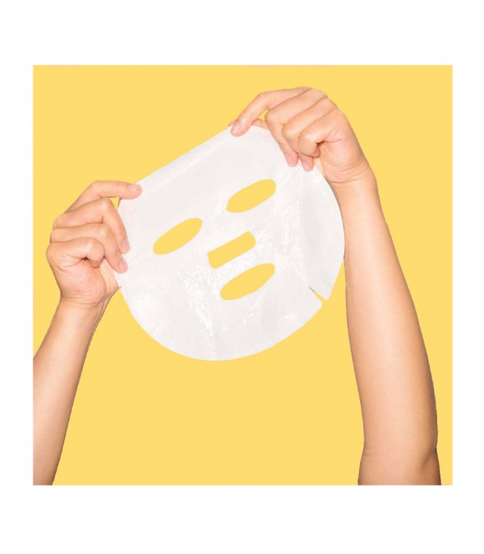 ماسک ورقهای را از بستهبندی خارج کرده و به آرامی روی صورت قرار دهید، طوری که کاملاً با پوست تماس داشته باشد.