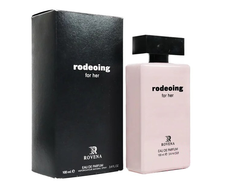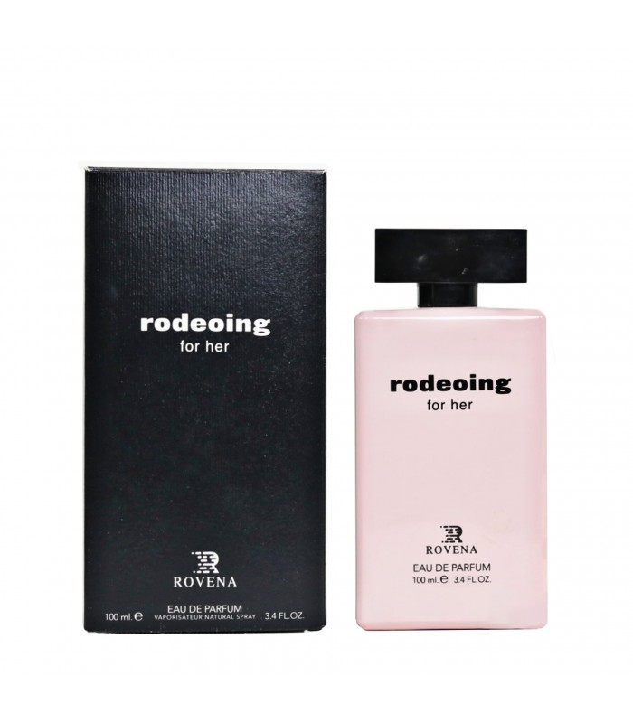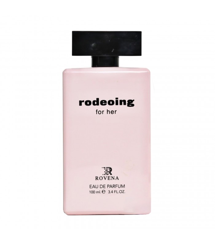 عطر Rovena Rodeoing for Her، محصولی زنانه با طبع متعادل و رایحهای مشکی گلی است که با الهام از عطر معروف Narciso Rodriguez for Her از برند نارسیسو رودریگز طراحی شده است.