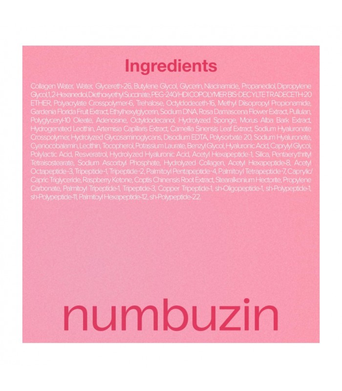 - ۵۴٪ آب کلاژن با وزن مولکولی پایین: همراه با ۵٪ نیاسینامید برای هیدراتاسیون عمیق، روشنکنندگی و یکنواخت کردن تن پوست، به علاوه هیالورونیک اسیدهای چندمولکولی برای رطوبترسانی لایهبهلایه.