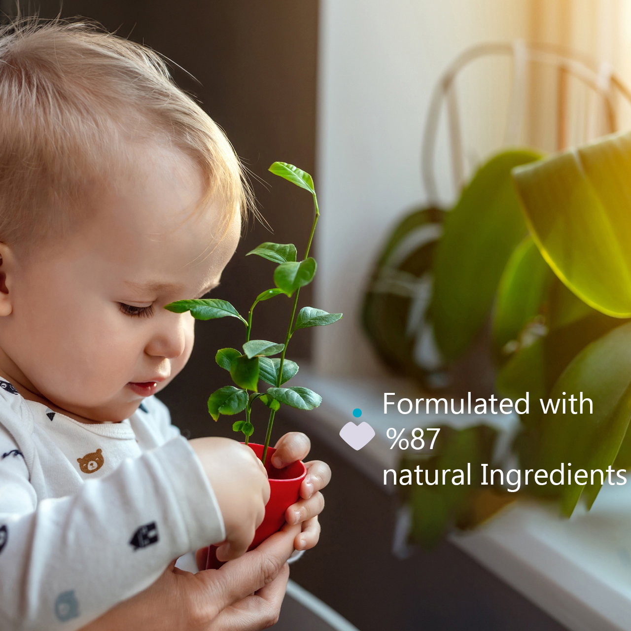 فرمول طبیعی: 87% مواد طبیعی، ایمن برای پوست حساس نوزادان.