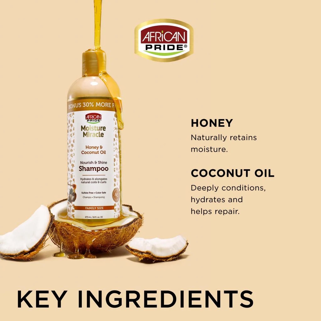 خرید شامپو عسل و روغن نارگیل آفریکن پراید(A frican Pride Moisture Miracle Honey And Coconut Oil Shampoo)